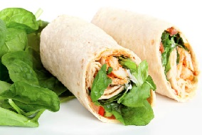 Chicken, Sauce, Romaine Lettuce, Red Onion, Green Peppers, Red Peppers, Tomatoes & Mozzarella